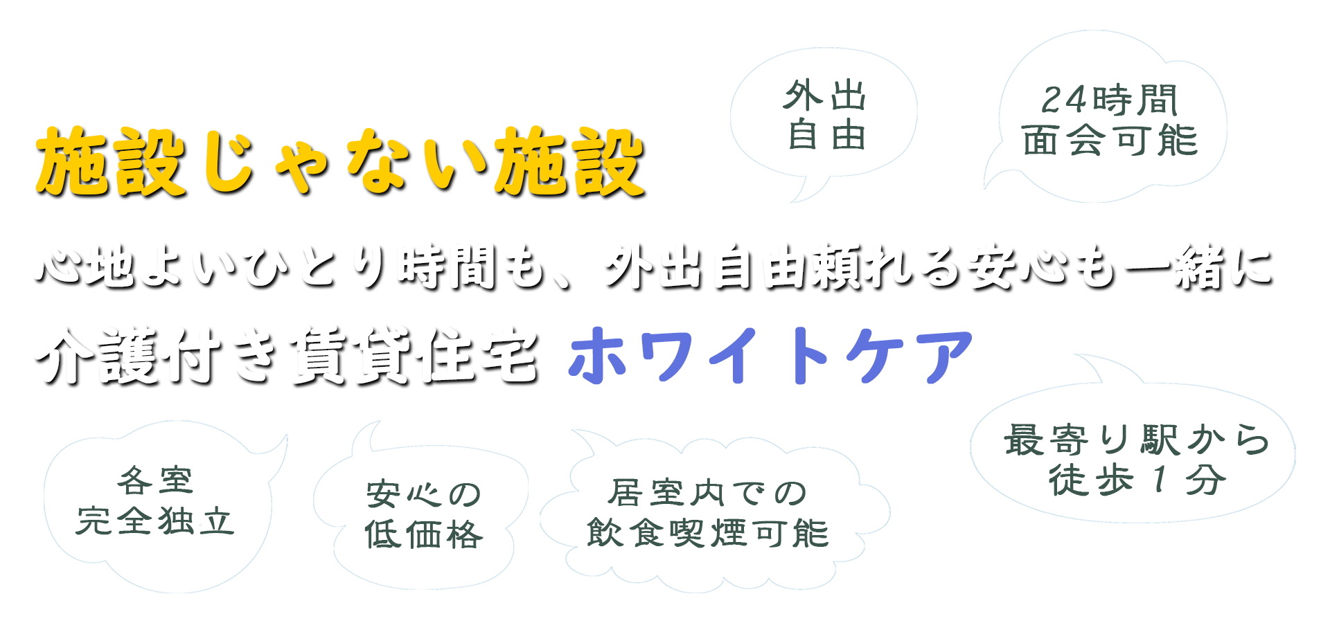 私たちホワイトケアは、訪問介護や介護予防サービスに対応した安心の住まいです。